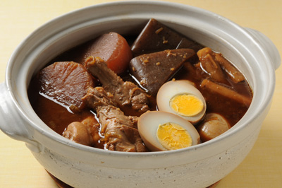 | (2) | 鍋に、A・長ねぎ・生姜・手羽元・だいこん・ごぼう・こんにゃくを入れて煮込み、具材がやわらかくなったら、赤みそ・ゆでたまごを入れてさらに煮込む。 |